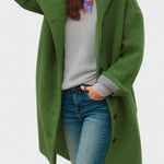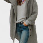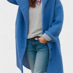 Rubio es el abrigo que nos encanta ponernos en cuanto llega el frío. Envolvente y ligero, ofrece un look relajado que complementa cualquier look. Su cierre clásico y largo hasta medio muslo lo convierten en una prenda que combina comodidad y atemporalidad, para el día a día.