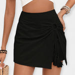 Elegante y femenino, este short-falda de talle alto con un discreto lazo en la parte delantera realza la silueta con absoluta delicadeza. Ideal para looks veraniegos, combina comodidad y estilo en cualquier ocasión.