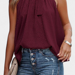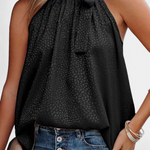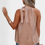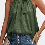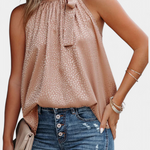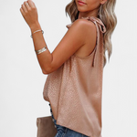 Adela | Top sin Mangas de Leopardo con Cuello Alto y Lazo