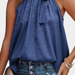 Audaz y femenino, el top Adela combina el clásico estampado de leopardo con un toque sofisticado. Su cuello alto con lazo aporta una elegancia inesperada, mientras que el corte suelto y sin mangas garantiza frescura y comodidad en los días más cálidos.