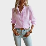 La elegante blusa Rosilda combina un diseño clásico con una elegante sofisticación. Su tejido fluido y sus finos detalles le confieren un aspecto refinado, mientras que su corte entallado garantiza la máxima comodidad. Perfecta para la oficina, eventos nocturnos o looks elegantes para el día a día.