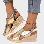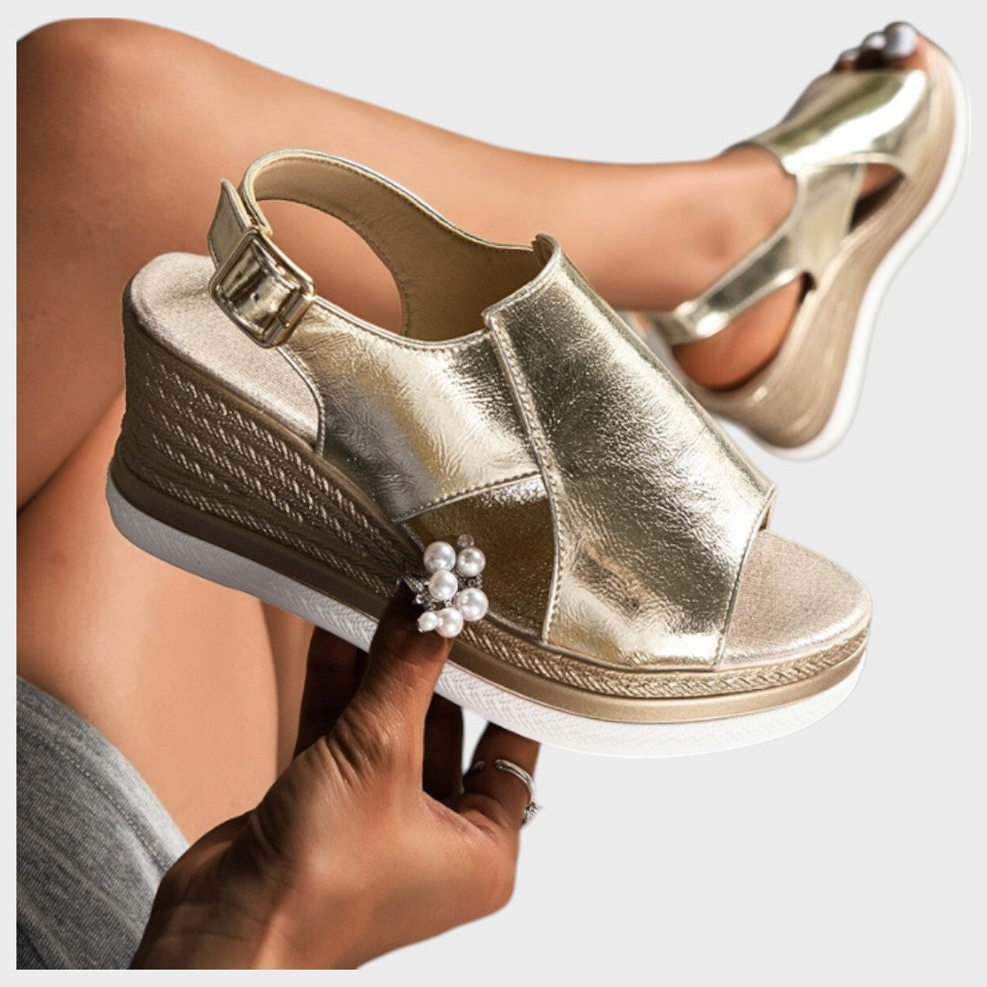 Las sandalias Núria combinan la elegancia moderna con la comodidad que necesitas para brillar en cualquier ocasión. Con su acabado metalizado, su cremallera ajustable y su resistente suela de cuña, son ideales para añadir altura y estilo sin renunciar a la estabilidad.