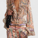 Finely | Conjunto con Blusa de Volantes y Estampado Vintage Paisley