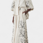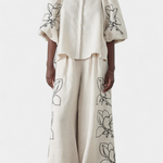 Relajado pero sofisticado, el conjunto Helen fusiona comodidad natural con un estilo elegante y actual. Su blusa de mangas globo y los pantalones de pierna ancha en mezcla de algodón y lino crean una silueta fluida y fresca, perfecta para los días cálidos. El estampado floral aporta un aire alegre y moderno, convirtiéndolo en un look versátil que funciona tanto para momentos casuales como para ocasiones con un toque especial.