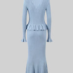 Prudence | Conjunto de Vestido Midi de Punto Refinado y Top con Botones