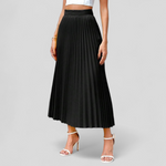 Elegancia Atemporal: Esta falda midi se distingue por su línea clara y finos pliegues, aportando un toque de ligereza femenina.