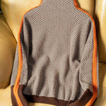 Imagina... una mañana de otoño, el aire fresco, un café caliente en la mano. Te pones tu suéter de punto, sientes la suavidad reconfortante del tejido y la elegancia natural de su cuello alto. Las rayas en contraste no son solo un detalle: esculpen tu silueta y atraen la mirada con discreción y estilo.
