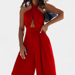 Jessica | Mono Halter Cruzado sin Espalda y Pierna Ancha