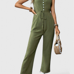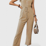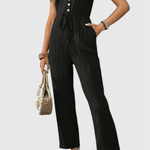 Pulido, transpirable y infinitamente versátil—Marisela es tu opción para una elegancia sin esfuerzo. Confeccionado en una mezcla de algodón texturizado, este mono sin mangas presenta un favorecedor escote en V, una cintura definida con cinturón y una silueta recta y limpia. Ya sea que salgas a un brunch o te vistas para una soirée de verano, ofrece comodidad con sofisticación moderna.