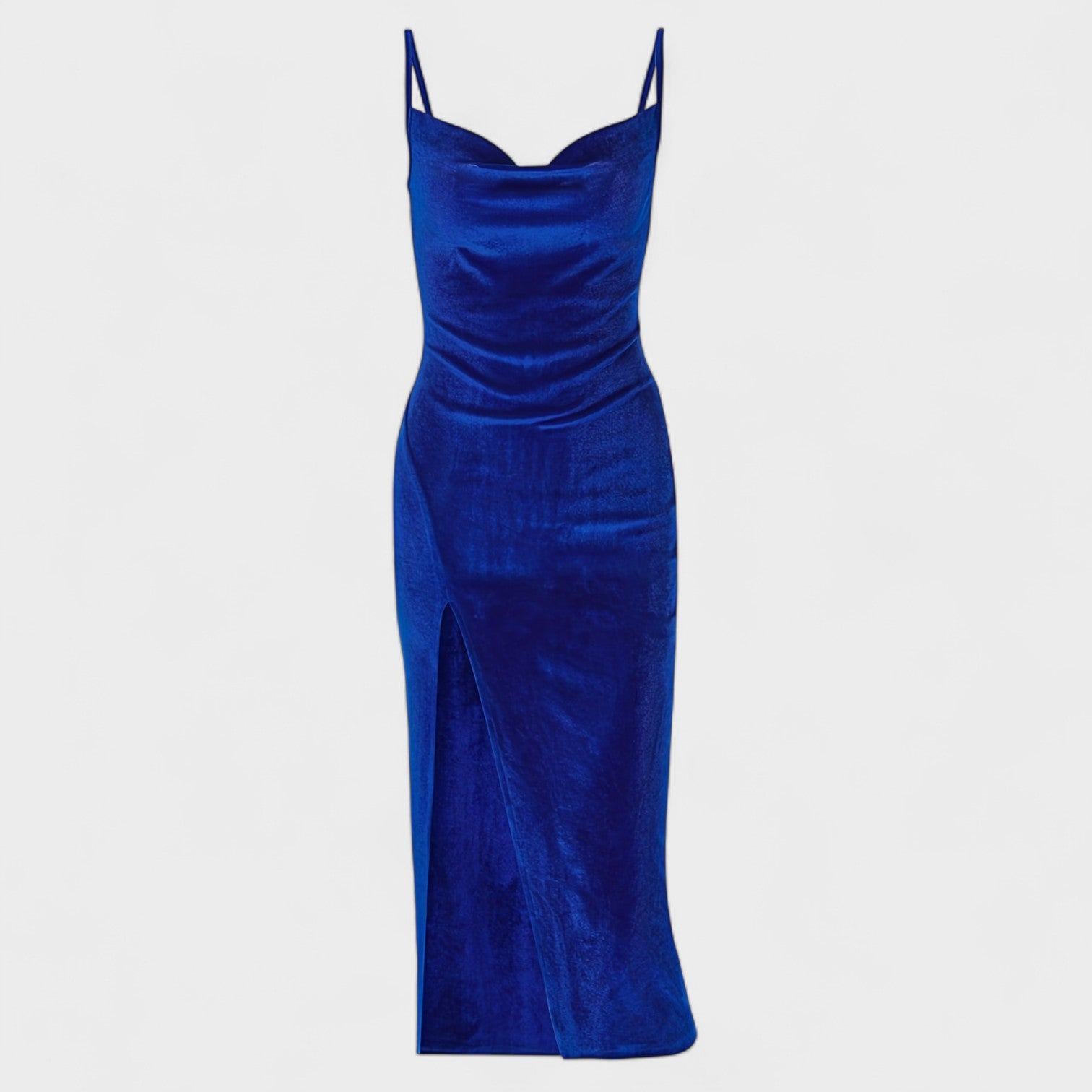 Un vestido que combina sensualidad y distinción en cada curva. Gabriela ha sido diseñado para ser tu aliado en noches especiales, gracias a su suave tejido de terciopelo y al escote sutilmente drapeado. La abertura lateral le da el toque justo de atrevimiento.