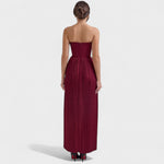 Este vestido sin tirantes realza tu figura con un escote estructurado y una falda plisada que se mueve con cada paso. Perfecto para celebraciones donde toda la atención está puesta en ti.