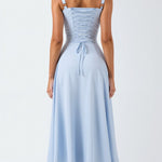El busto fruncido y el escote corazón aportan un encanto delicado, ideal para quienes buscan un look sofisticado y dulce.