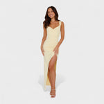 El vestido Sarella redefine la sofisticación con su escote drapeado y la espalda descubierta con lazo. Con una silueta entallada que estiliza y una abertura lateral que aporta movimiento, es ideal para eventos especiales en los que quieras brillar.