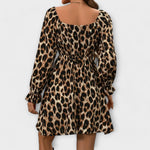 Cause una buena impresión con este encantador vestido de elegante estampado de leopardo, que combina un sofisticado escote cuadrado con una falda en A femenina y favorecedora.