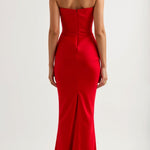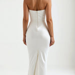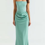 El vestido Fiorella es la definición de elegancia atemporal. Con un corsé estructurado y sin tirantes, moldea el torso con sofisticación, ofreciendo soporte y comodidad en cada movimiento.