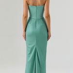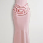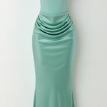 La falda larga cae con un sutil toque de sirena, proporcionando un movimiento fluido y llamativo a cada paso; perfecto para eventos donde quieres ser el centro de atención.