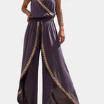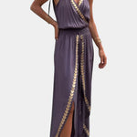 Lorena | Vestido Mono con Detalles Dorados y Abertura en la Pierna