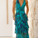 Sumérgete en un universo de elegancia sin esfuerzo con el vestido largo Marina, en deslumbrantes tonos de turquesa y zafiro. Su tejido ligero y fluido acompaña cada movimiento, mientras el escote en V profundo y las capas de gasa crean una silueta sofisticada y aireada. Perfecto para cenas junto al mar o encuentros veraniegos, es la prenda que respira gracia y encanto en cualquier ocasión.