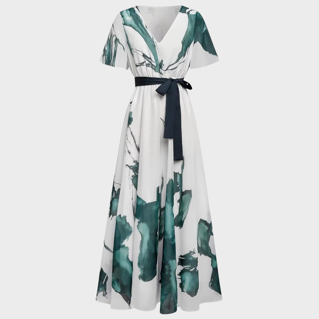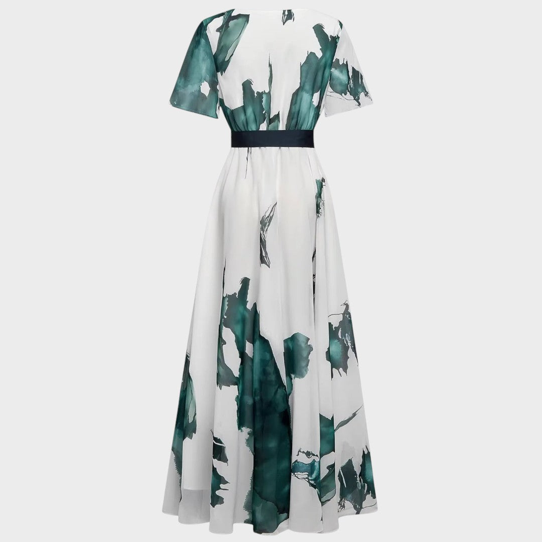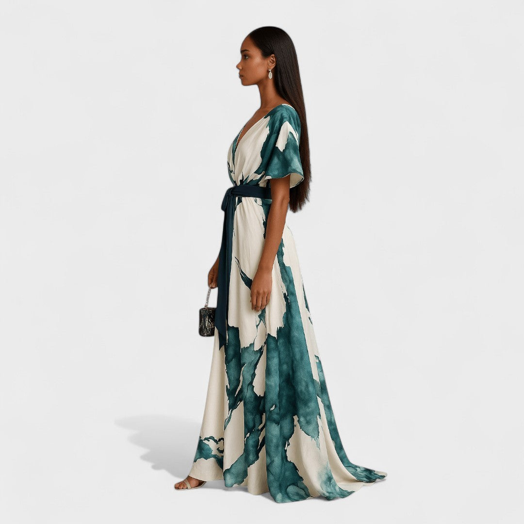 Vestido largo con efecto acuarela: elegancia en movimiento.