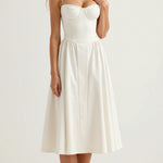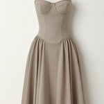 El Odette Élégance es la reinvención del encanto vintage, con un corsé estructurado tipo bustier que moldea la silueta con sofisticación y comodidad. Las costuras estratégicamente colocadas definen la cintura, mientras que la falda con pliegues marcados crea un volumen deslumbrante y lleno de movimiento.