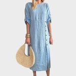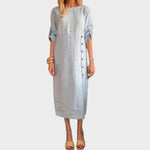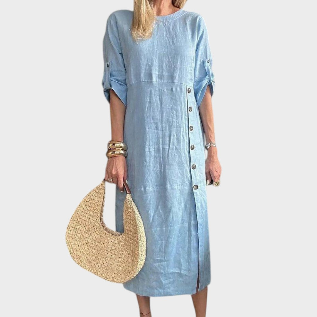 Adélia | Vestido De Algodón Y Lino Con Botones