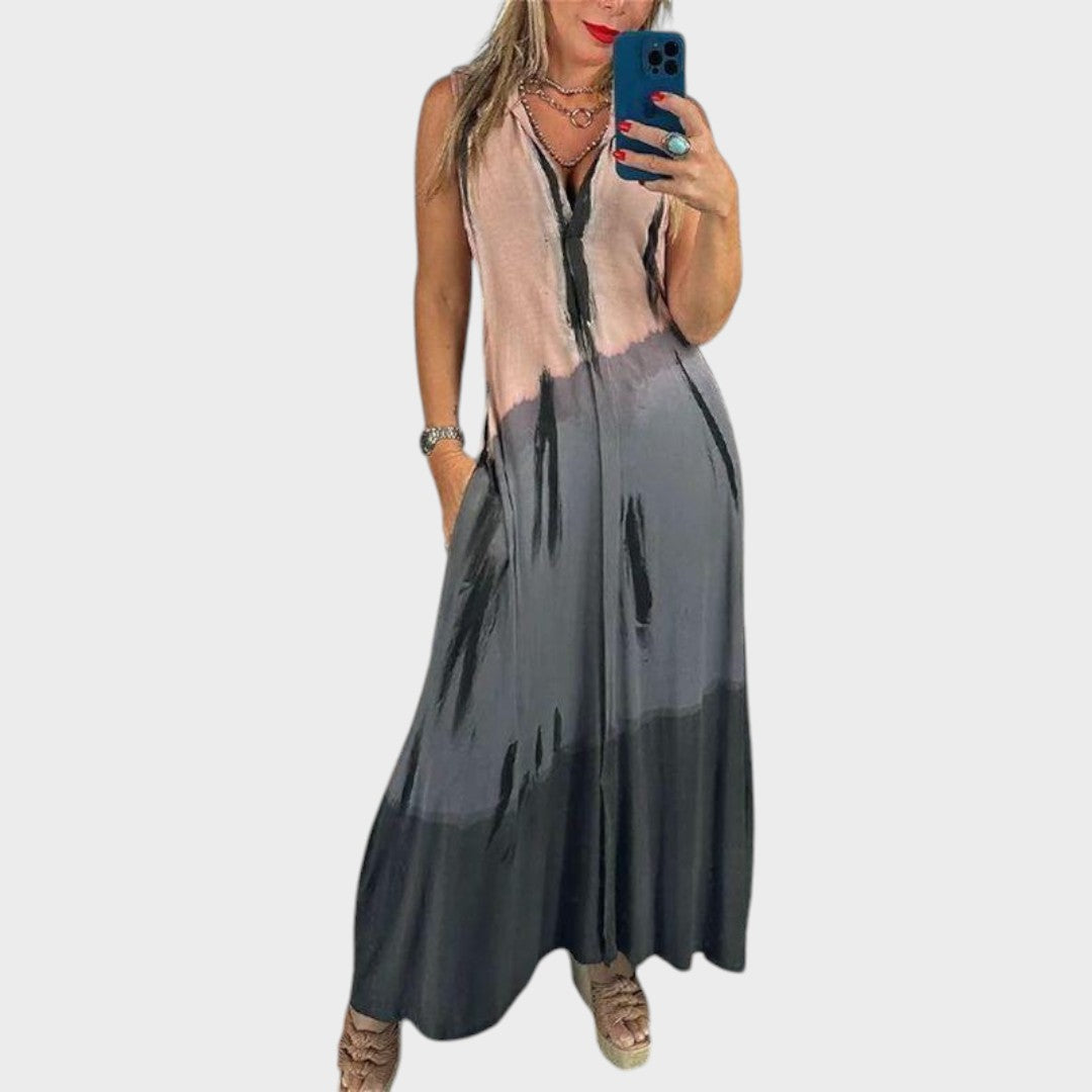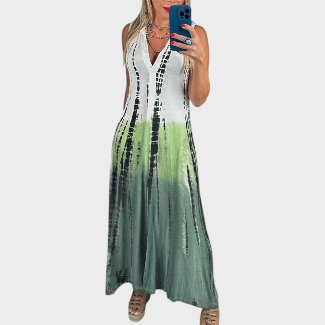 Diseñado para mujeres que valoran la libertad de movimiento, un look auténtico y tejidos ceñidos, este vestido combina arte y ligereza en un diseño moderno y desenfadado. Con un diseño holgado sin mangas y un escote en V estructurado, ofrece un ajuste perfecto y una frescura absoluta.