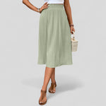 Con una delicada estructura plisada, esta falda ofrece una silueta ligera y fluida. Su cintura elástica proporciona un ajuste perfecto sin apretar, haciendo que cada conjunto sea elegantemente effortless. Perfecta para el tiempo libre, vacaciones o uso diario.