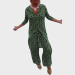 El conjunto Lupita es la expresión perfecta de estilo y comodidad. Con su llamativo estampado y su corte fluido, es ideal para quienes les gusta destacar con sofisticación, sin renunciar a la ligereza. El escote en V y las mangas 3/4 equilibran el look entre informal y chic, perfecto para días soleados o eventos relajados.