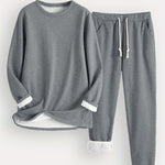 Descubre el conjunto lounge ideal para los días frescos, que combina un suéter de corte relajado y un pantalón de chándal a juego. El forro polar suave te envuelve en calidez, ya sea para un día tranquilo en casa o para una salida casual.