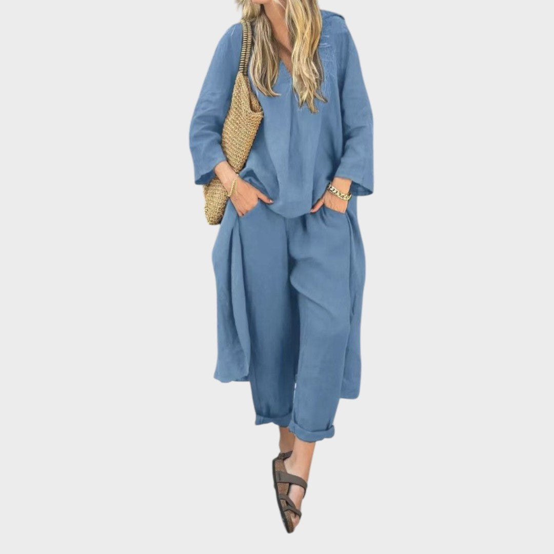 Solura | Conjunto De Dos Piezas De Algodón Con Line En V